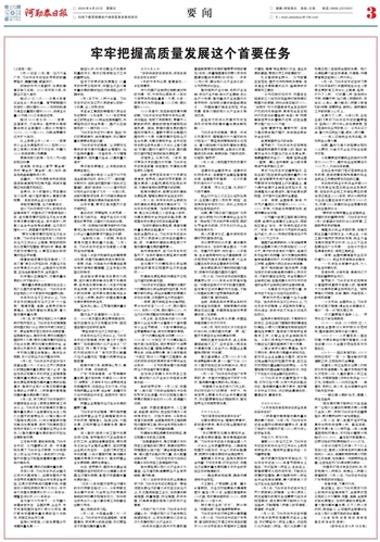 4月3日,学习贯彻习近平新时代中国特色社会主义思想主题教育工作会议上,习近平总书记强调紧紧围绕高质量发展这个全面建设社会主义现代化国家的首要任务,以强化理论学习指导发展实践,以深化调查研究推动解决发展难题,把学习和调研落实到完成党的二十大部署的各项任务中去,以推动高质量发展的新成效检验主题教育成果。
