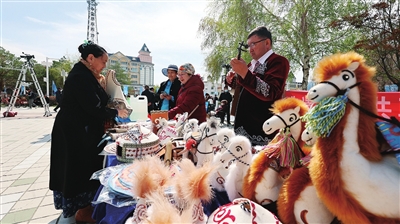 放眼活动现场,参展商品琳琅满目,沙棘制品、纯手工奶制品、蜂蜜、手工艺品等特色展品吸引众多游客和当地居民驻足品尝、欣赏。