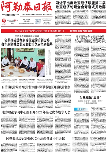 会议听取了地区文化润疆工作进展情况汇报,研究审议了《阿勒泰地区深入开展文化润疆工作的实施方案(2023—2025年)》《2023年阿勒泰地区文化润疆工作要点》。