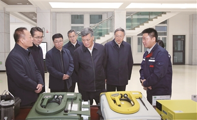 十一月二十九日,自治区党委书记马兴瑞到自治区生态环境监测总站调研大气污染治理工作。这是马兴瑞在自治区生态环境监测总站详细询问各类设备运用情况。 □石榴云/新疆日报记者 崔志坚 摄