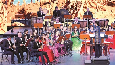 热情的热瓦普、欢快的弹拨尔、婉转的扬琴、豪放的长号……现场旋律时而欢快灵动、时而婉转悠扬、时而气势恢宏,美妙绝伦的舞台呈现,让观众身临其境般领略天山南北好风光。
