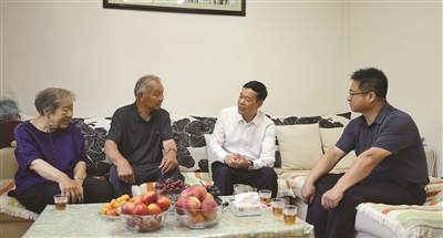 6月30日,杰恩斯·哈德斯一行来到阿勒泰市困难党员刘健兵家,详细了解他的生活、工作情况。今年67岁的刘健兵是原阿勒泰地区糖烟酒公司退休职工,他和妻子都患有重病。但刘健兵对待生活积极乐观,主动担任小区楼栋长,得到干部和居民的一致好评。杰恩斯·哈德斯叮嘱他要保重身体、乐观自信,多出去走走,感受祖国的大好河山。相关部门要积极帮助他们排忧解难,让他们切实感受到党组织的关怀与温暖。