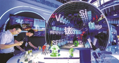 6月27日,观众在第八届中国—亚欧博览会哈密市展馆新材料展台参观。 □石榴云/新疆日报记者 蔡增乐 摄
