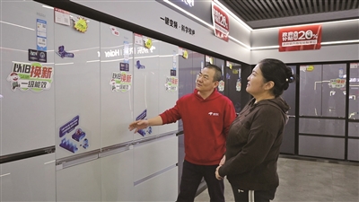 当日,在阿勒泰市万驰广场京东家电专卖店内,不少顾客正在选购家电,并现场咨询家电以旧换新政策。店员们通过线上、线下销售相结合的方式,为广大顾客提供各项贴心服务。“自家电以旧换新活动与门店‘双11’活动开展以来,以旧换新订单增长了50%,约有九成消费者通过以旧换新的方式购买新的家电。”万驰广场京东家电专卖店负责人冉宪国说。