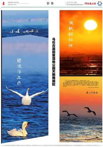 乌伦古湖国家湿地公园地处阿尔泰山前平原、准噶尔盆地北部,是中国十大内陆淡水湖,也是新疆北部最大的永久性淡水湖,这里丰富的水资源和多样的生态环境为天鹅等候鸟提供了理想的生存条件。近年来,随着持续加大生态保护和鸟类保护力度,该湿地公园吸引越来越多的美丽“访客”在此栖息、繁衍。今冬,疣鼻天鹅、大天鹅算是这些候鸟中的最后一批迁徙客。