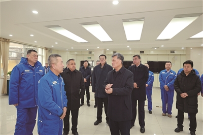 二月十二日,自治区党委书记马兴瑞、自治区主席艾尔肯·吐尼亚孜来到乌鲁木齐石化公司、新疆鑫泰天然气股份有限公司调研。这是马兴瑞、艾尔肯·吐尼亚孜在乌鲁木齐石化公司,听取有关工作介绍,了解企业生产经营、减排降碳、技术攻关等各项工作开展情况。