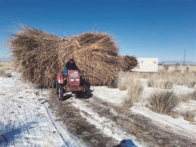 今年2月,这片芦苇荡迎来了“高光时刻”。阿克苏地区温宿县的利春农业发展农民专业合作社看中了这里的芦苇资源,计划在今年收购5000~8000吨。这些芦苇可不是要拿去烧火做饭,而是要运往吉木乃县,用于防沙治沙项目——锁边工程,成为抵御风沙侵袭的坚实屏障。