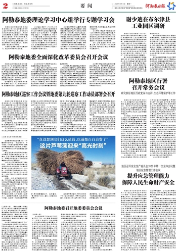 会议研究审定了阿勒泰地委委员会2025年工作要点。会议强调,要深入学习贯彻习近平总书记关于新疆工作的重要讲话重要指示批示精神,完整准确全面贯彻新时代党的治疆方略,按照自治区党委十届十三次全会安排部署,牢牢扭住新疆工作总目标,坚持稳中求进工作总基调,把推进中华民族共同体建设作为工作主线,更好统筹发展和安全、开放和安全,坚定不移推动经济社会高质量发展,全面融入自治区“十大产业集群”建设,解放思想、真抓实干,争先创优、争先进位,以更高效率、更积极姿态推动各项事业发展,奋力谱写中国式现代化阿勒泰篇章。