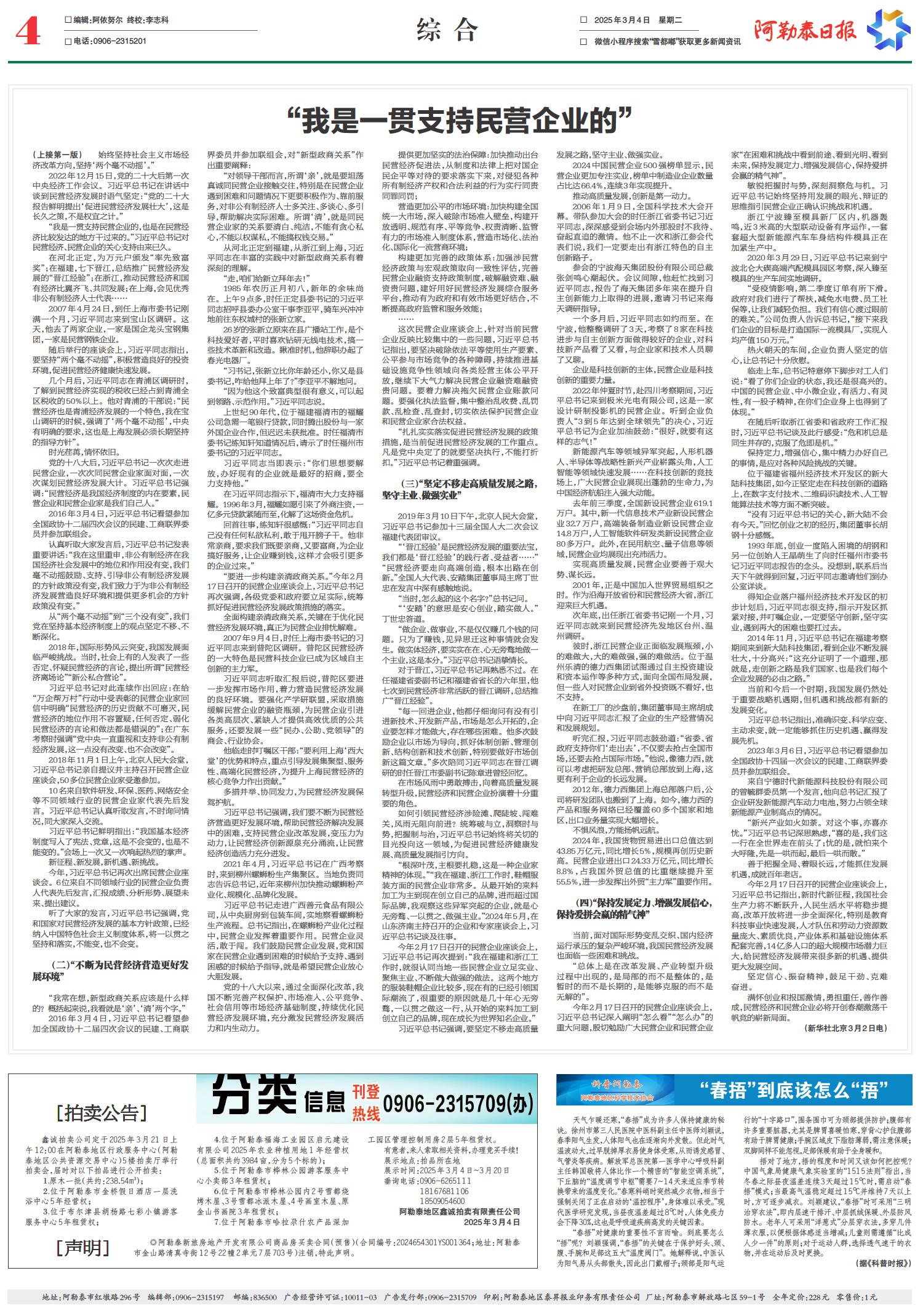 “我是一贯支持民营企业的”