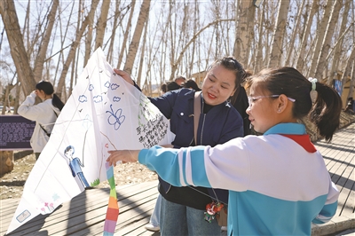 本报讯(记者 董世菊)4月12日,阿勒泰市中心小学在桦林公园举办了一场主题为“‘筝’奇斗艳 追风逐梦”的创意风筝制作活动,众多家庭于和煦春风中体验非遗魅力。
