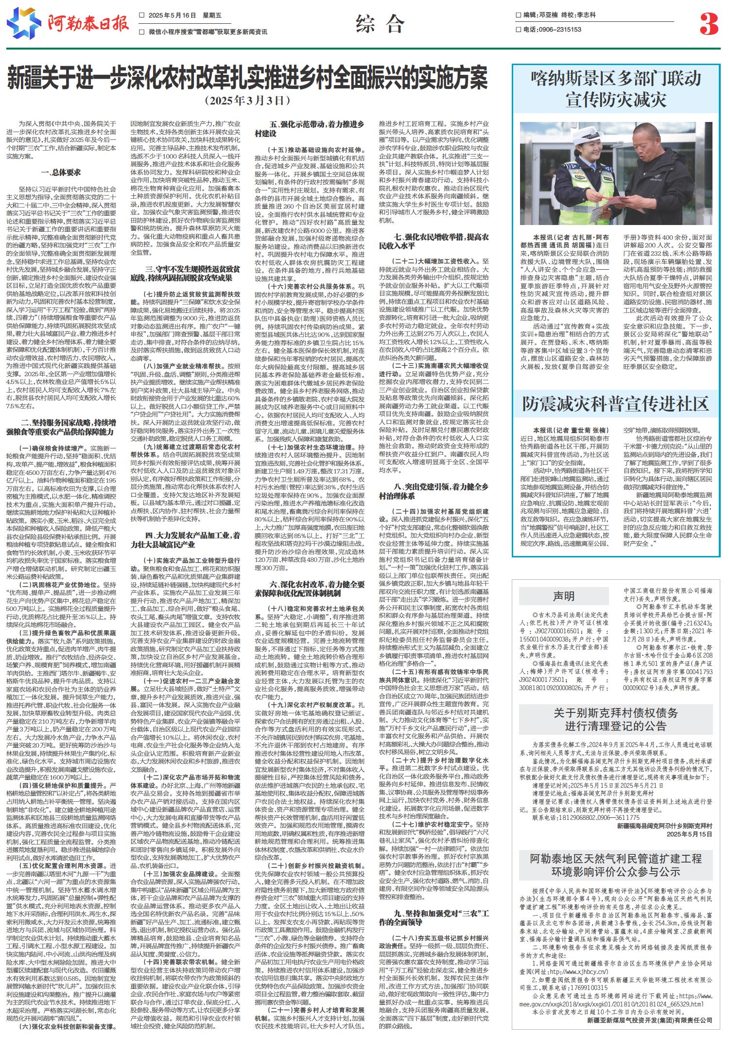 关于别斯克拜村债权债务 进行清理登记的公告