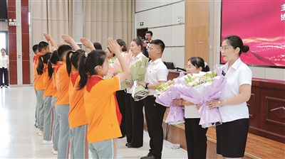 报告会上,少先队员先后向2022年度中国好人(敬业奉献),第八届自治区敬业奉献道德模范,2022年度“新疆社会主义精神文明好人好事”获得者李强;第四届自治区孝老爱亲道德模范赵军花;第八届自治区助人为乐道德模范,2023年度“新疆社会主义精神文明好人好事”获得者李红秀;第八届地区诚实守信道德模范,2022年度“新疆社会主义精神文明好人好事”获得者陶奇;第十届地区敬业奉献道德模范李新强以及报告团成员献花。
