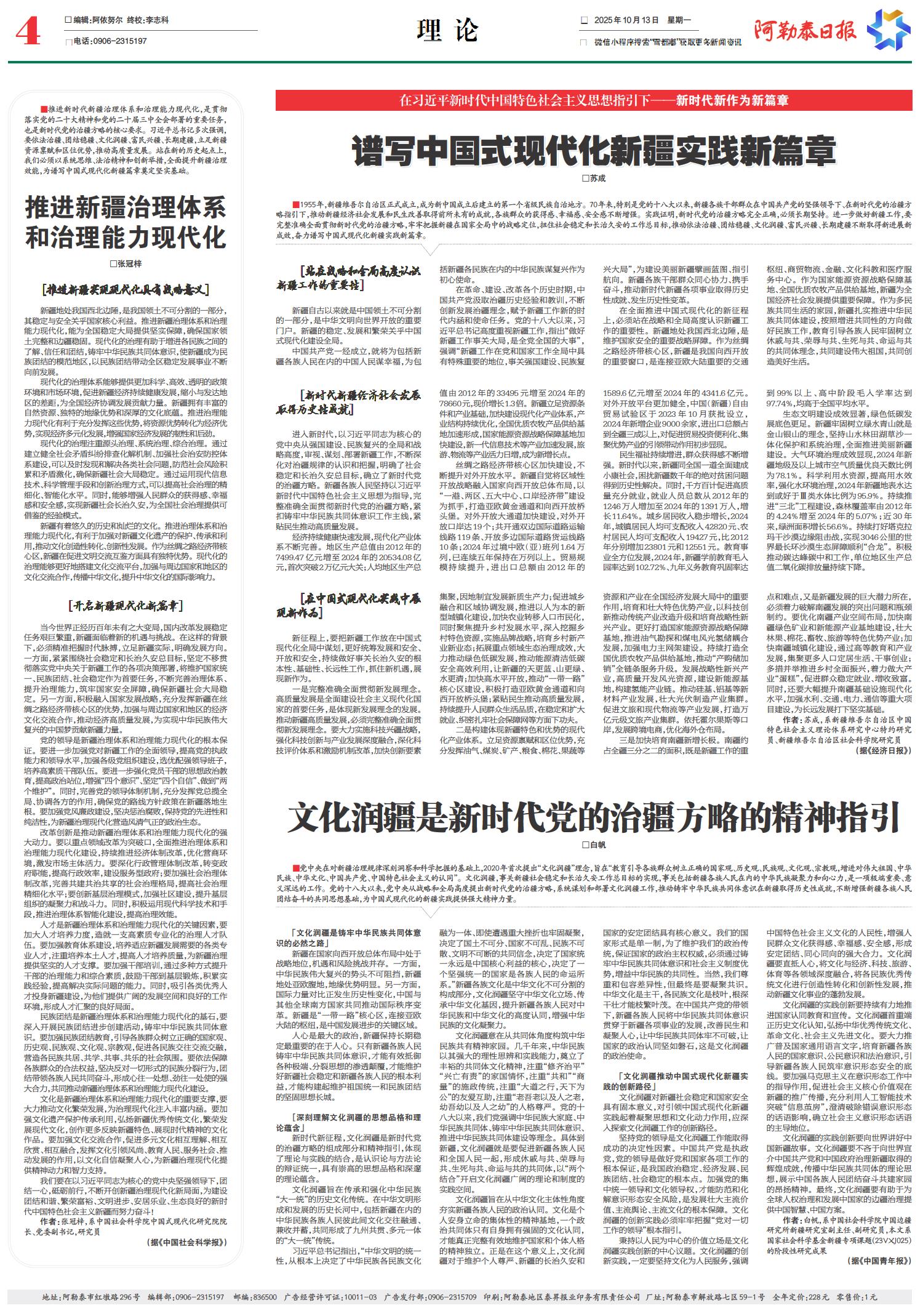 谱写中国式现代化新疆实践新篇章