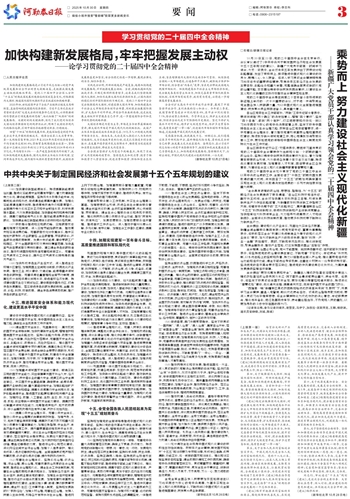 10月20日至23日,党的二十届四中全会在北京举行。会议审议通过了《中共中央关于制定国民经济和社会发展第十五个五年规划的建议》。新疆广大党员干部第一时间学习领会,大家一致表示,全会对未来五年发展作出了顶层设计和战略擘画,发出了乘势而上、接续推进中国式现代化建设的动员令,鼓舞人心、令人振奋。将深入学习贯彻全会精神特别是习近平总书记重要讲话精神,聚焦未来五年经济社会发展的主要目标、战略任务和重大举措,完整准确全面贯彻新时代党的治疆方略,紧紧围绕铸牢中华民族共同体意识,以建设社会主义现代化新疆的实际行动推动全会精神落地生根。
