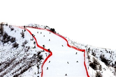 千里画廊,若天公展卷;万年雪疆,似玉砌瑶台。墩德沟岩绘之奇^⑦,上古遗韵;将军山雪场之胜,亚欧无俦;青河狼山,苍狼故道;可可托海,海兰盈眸;吉克普林,林海雪原。李娟名文《九篇雪》,已成金山绝唱;雪道纵横二百条,实乃大荒造化;霜华晕染千里山,俨然水墨画卷。