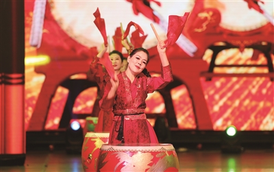 鼓乐舞蹈《欢乐鼓舞闹神州》。实习记者 彭林海 摄