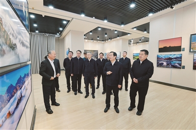一月九日,自治区党委书记陈小江在自治区社科联、自治区文联调研并座谈,向全区各族哲学社会科学工作者、文艺工作者致以亲切问候。这是陈小江在自治区文联,参观新疆风光摄影展并与摄影师亲切交流。□石榴云/新疆日报记者 崔志坚 摄