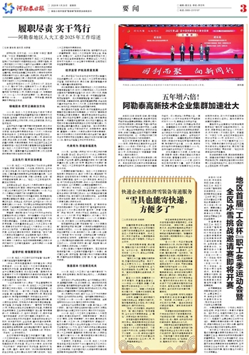 本报讯(记者 古扎丽·阿布都热西提)日前,记者从地区工会、地区文化体育广播电视和旅游局获悉,2026年阿勒泰地区首届“工会杯”职工冬季运动会暨全区冰雪挑战邀请赛将于1月30日至2月3日举行。赛事设高山滑雪、越野滑雪、速度滑冰三大项目,目前各项筹备工作已全面展开。