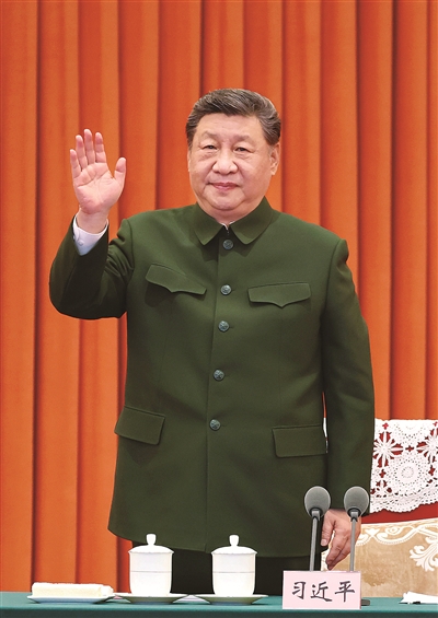 2月10日,中共中央总书记、国家主席、中央军委主席习近平在北京八一大楼以视频方式检查全军战备值班和执行任务情况,亲切慰问有关部队,代表党中央和中央军委,向全体人民解放军指战员、武警部队官兵、军队文职人员、预备役人员和民兵致以诚挚问候和新春祝福。这是习近平向官兵挥手致意。
