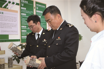 阿勒泰海关相关负责人在辖区企业了解农产品出口情况。通讯员 加尼波拉提 摄