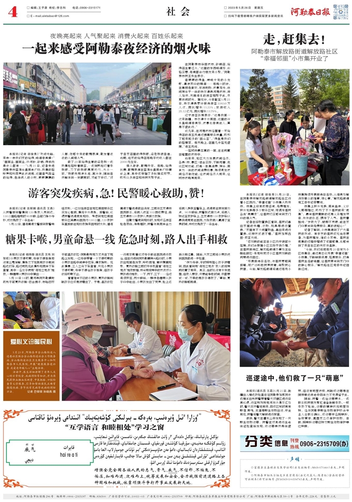 本报讯(通讯员 王磊)5月21日,新疆出入境边防检查总站阿勒泰加郎阿什边境派出所民警带着警犬对辖区进行日常巡逻,行至别列则克河与沙漠交汇处时,警犬突然警觉起来,因该区域时常有野猪、野兔、狐狸等野生动物出没,安全起见,民警将警犬解锁进行探查。