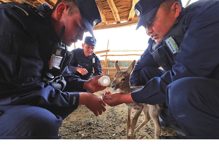 随后,民警一边给幼崽喂水,一边联系牧民朋友帮忙准备新鲜牛奶,一瓶牛奶下肚后,幼崽的精神状况明显好转。经与阿勒泰野生动物保护协会专业人士联系确认,该幼崽学名鹅喉羚,俗称黄羊,属国家二级保护动物。目前,鹅喉羚幼崽已转交野生动物保护单位照顾。