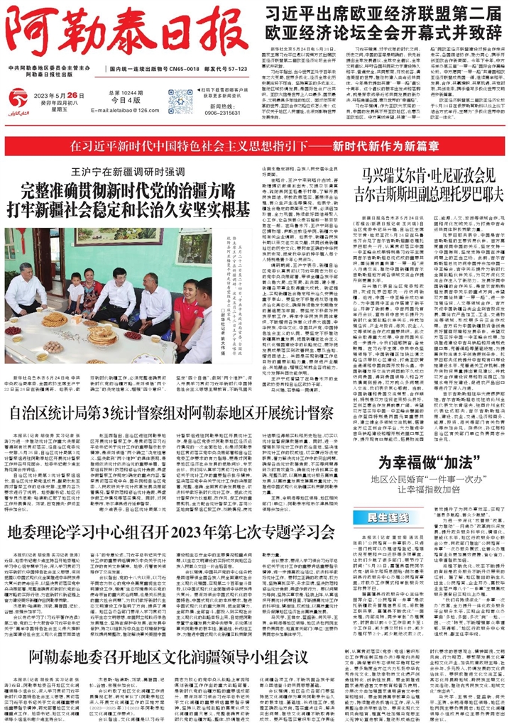 - 阿勒泰地委召开地区文化润疆领导小组会议 本报讯(记者 胡俊秀 实习记者 张涛)近日,阿勒泰地委召开地区文化润疆领导小组会议,深入学习贯彻习近平新时代中国特色社会主义思想,贯彻落实习近平总书记关于文化润疆重要讲话重要指示精神,研究部