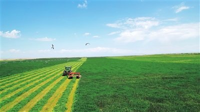 目前,阿勒泰市7.24万亩紫花苜蓿已进入收获期。近年来,该市加快推进退耕还草步伐,为畜牧业发展提供了充足的饲草料保障。