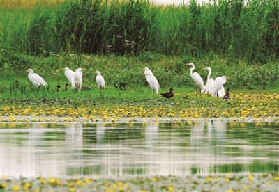 湿地青青 白鹭欢舞 8月8日,成群白鹭在阿勒泰科克苏湿地国家级自然保护区内栖息、觅食。 近年来,地区积极践行“ 绿水青山就是金山银山”发展理念,加强对境内河湖、湿地生态治理和环境保护,吸引多种珍稀鸟类到此栖息繁衍。 记者 阿尔达克·拜斯汗 实习生 迪娜·赛力克 摄