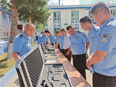 本报讯(通讯员 宁田浩)“通过警用无人机视频巡查边境险道要道,既能提高巡边效率,也能缓解警力紧张……”阿勒泰边境管理支队大桥边境派出所教导员尚晔在对友邻单位成员介绍科技强边系列设施时说。