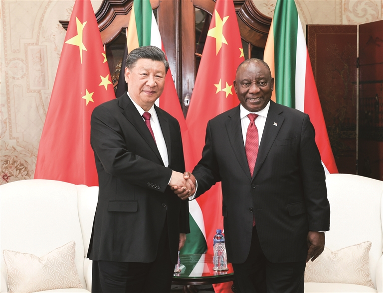 (上接第一版) 中方愿用好中南职业教育联盟、“未来非洲—中非职业教育合作计划”等机制,加强两国职业教育、促进青年就业方面交流合作,助力南非培养更多经济社会发展急需的各类人才。双方要加强旅游合作,支持科研机构和企业加强技术合作和联合研究,让合作成果更多惠及两国人民。
