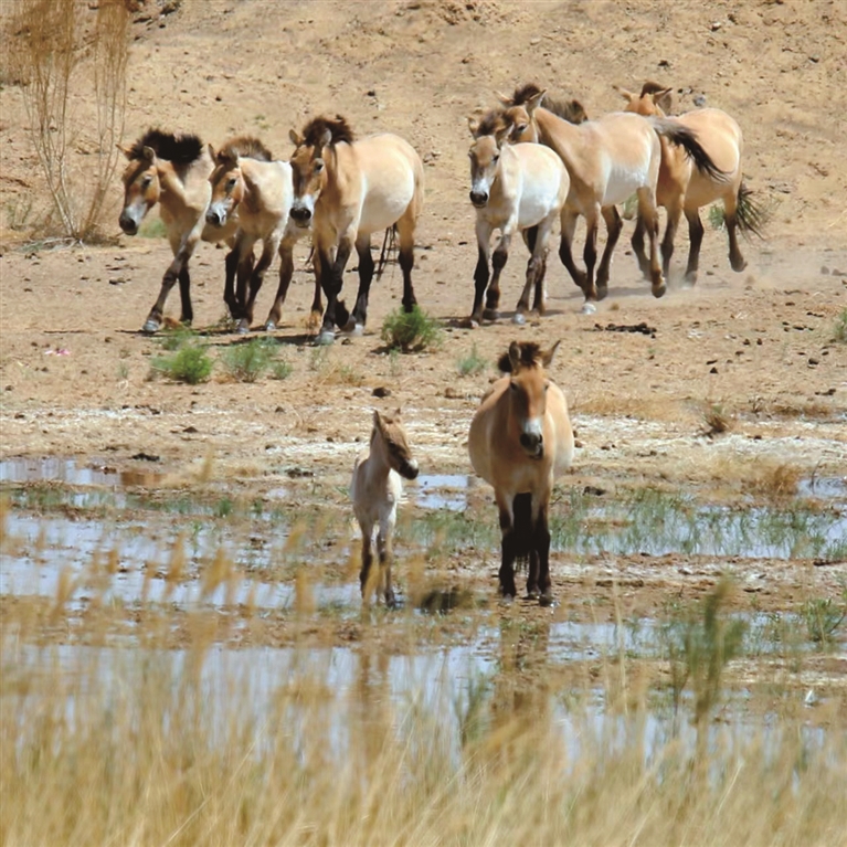卡拉麦里山意为黑色的山,位于准噶尔盆地东部,是我国温带干旱小乔木荒漠生态系统的典型代表,是我国唯一温带荒漠有蹄类野生动物集中分布区,生活着260种野生脊椎动物,其中国家一级保护野生动物14种,国家二级保护野生动物42种。