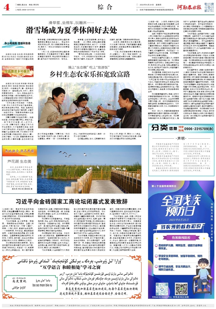 - 习近平向金砖国家工商论坛闭幕式发表致辞 (上接第一版) 是在开放包容中走向繁荣,还是在霸道霸凌中陷入萧条?是在交流与互鉴中增进互信,还是让傲慢与偏见蒙蔽良知?历史的钟摆朝向何方,取决于我们的抉择。 习近平强调,当今世界