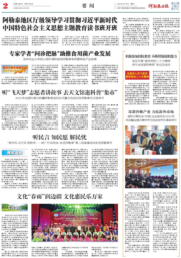 本报讯(记者 常轶茹 实习记者 刘欢)9月15日,由自治区科学技术协会、阿勒泰地区行署主办的2023年全国科普日新疆阿勒泰启动仪式暨主场活动在阿勒泰天文馆举行,活动以“提升全民科学素质,助力五大产业发展”为主题,是2023年自治区“2+6”全国科普日新疆主场活动之一。