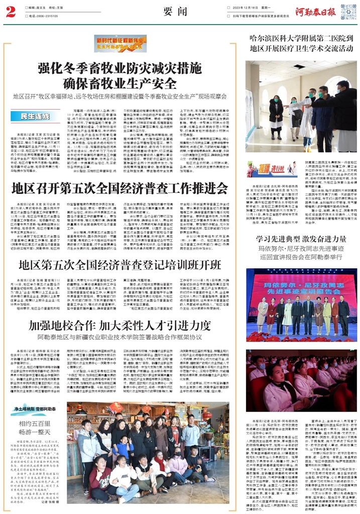 本报讯(记者 古扎丽·阿布都热西提 实习记者 贺凌峰 通讯员 徐飞)为深入贯彻习近平总书记“奋力推动对口援疆工作更高质量开展”重要指示精神,提升地区医疗服务水平和科研教学能力,在地区卫健委和黑龙江省援疆工作前方指挥部的大力支持下,12月14日,黑龙江省医疗领域专家来到阿勒泰传经送宝。