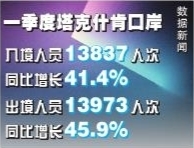 本报讯(记者 古丽娜 通讯员 加尼波拉提·胡阿尼西别克)4月22日,记者从阿勒泰海关了解到, 今年1~3月,塔克什肯口岸出入境人员达27810人次,同比增长43.6%。其中,入境人员13837人次,同比增长41.4%;出境人员13973人次,同比增长45.9%。