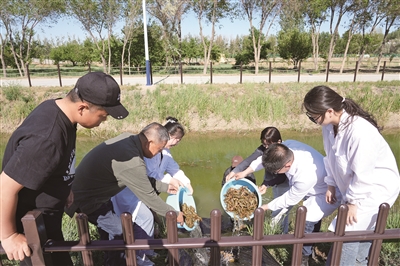 “今天,我们投放了5000余只虾苗,这种螯虾生长速度快、适应性强、抗病性强、成活率高,其营养价值非常高,富含多种维生素、尼克酸、虾青素等营养物质,养殖前景广阔。”新疆农业大学动物医学学院教师、新疆额河螯虾产业技术研发团队首席科学家李斌介绍说。