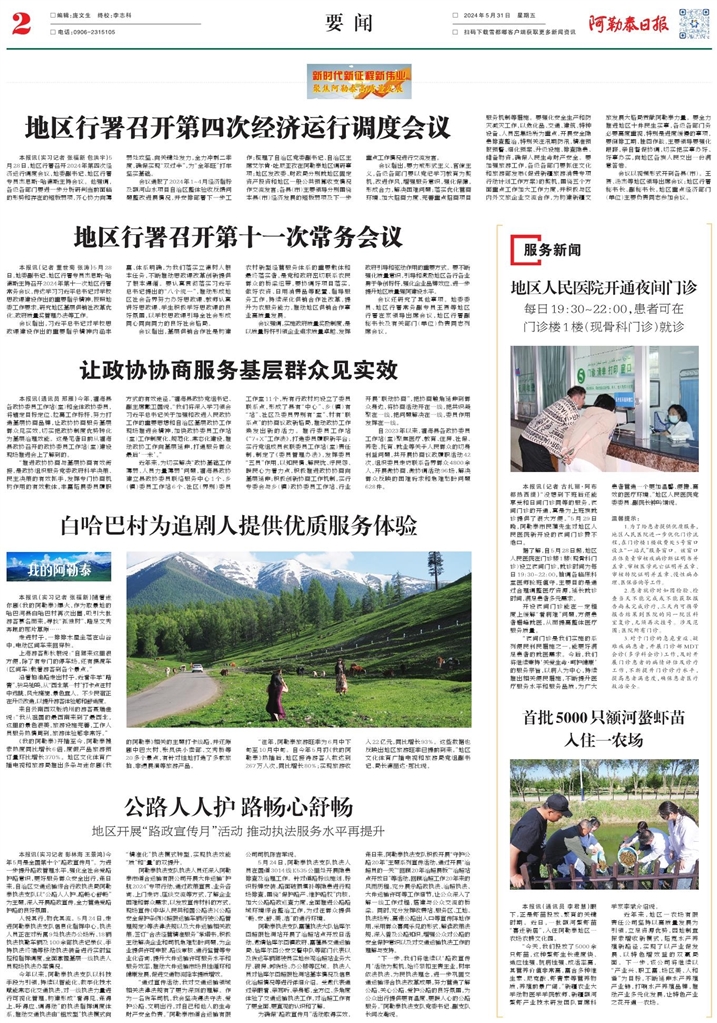 - 地区行署召开第四次经济运行调度会议 本报讯(实习记者 张福新 包洪宇)5月28日,地区行署召开2024年第四次经济运行调度会议,地委副书记、地区行署专员杰恩斯·哈德斯主持会议。他强调,各级各部门要进一步分析研判当前面临的形势和存在的