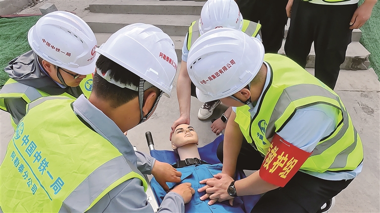 “本次演练中,我担任医疗救护组组长,负责对伤员进行救治。经过演练,我认识到应急救援的重要性,后续我们将继续学习现场紧急救护知识,提升现场救护技能,为施工人员生命安全保驾护航。”中铁一局阿勒泰建设工程有限公司市人民医院项目生产技术部副部长赵永刚说。