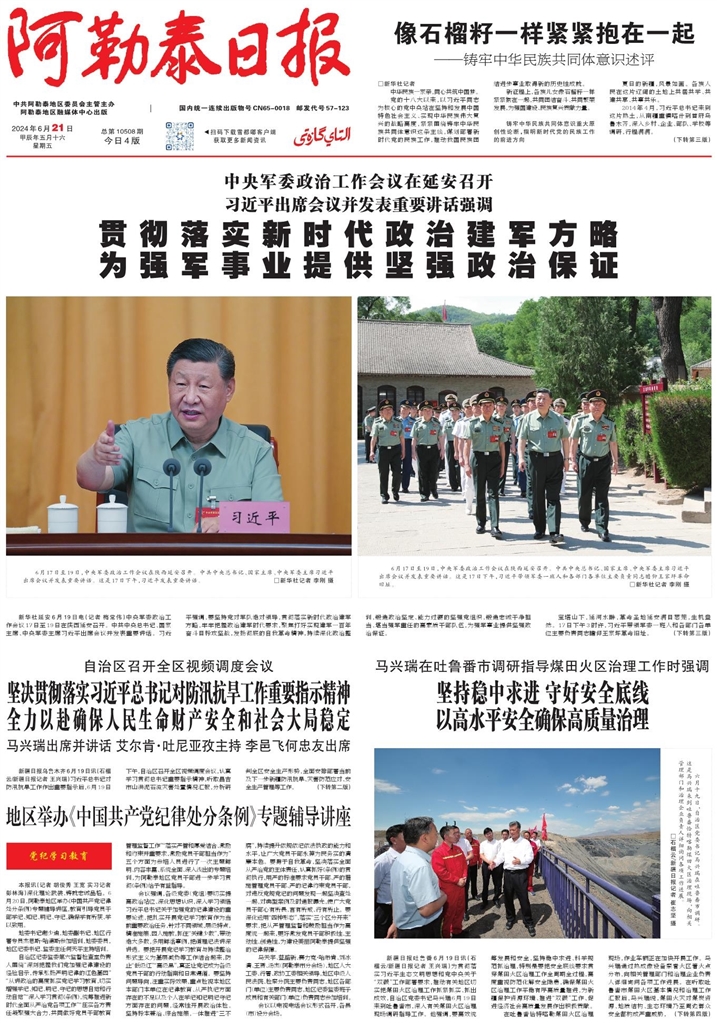- 坚决贯彻落实习近平总书记对防汛抗旱工作重要指示精神 全力以赴确保人民生命财产安全和社会大局稳定 新疆日报乌鲁木齐6月19日讯(石榴云/新疆日报记者 王兴瑞)习近平总书记对防汛抗旱工作作出重要指示后,6月19日下午,自治区召开全区视频调度会议,认真学习贯彻总书记重要指示精神,听