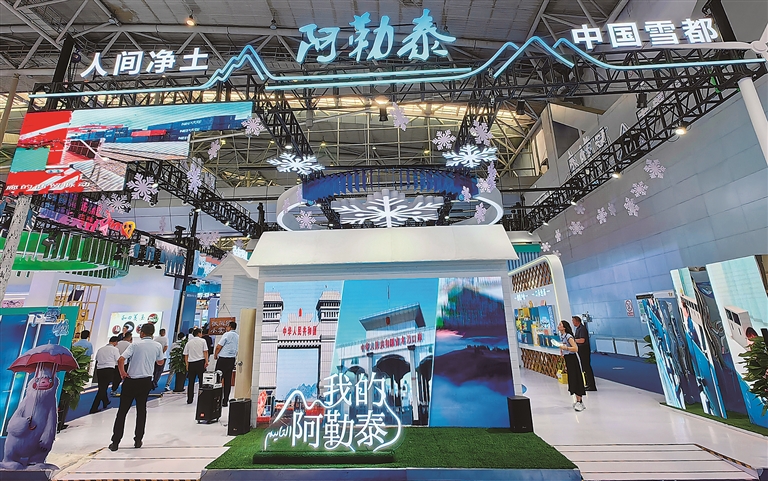 此次参展,阿勒泰地区展馆以“我的阿勒泰”为核心主题,突出滑雪和冬季旅游资源等元素,围绕“五大产业”和口岸经济进行提取、凝练、创意,铺展出一幅层层递进城市会客厅的画卷,让世界看见阿勒泰。