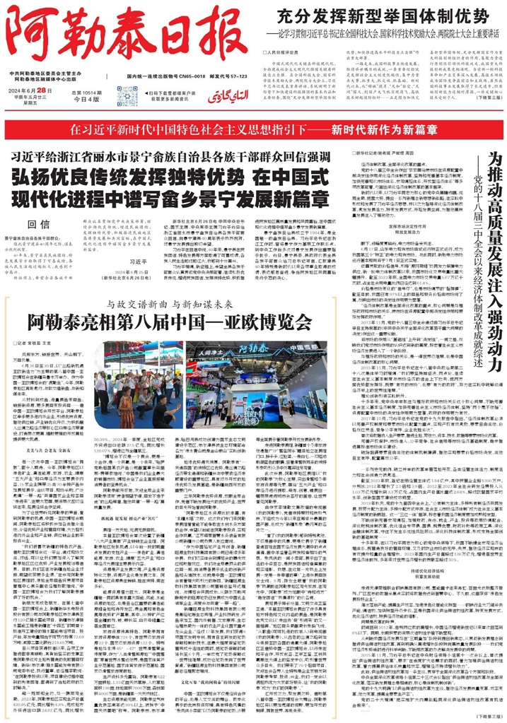 - 阿勒泰亮相第八届中国—亚欧博览会 □记者 常轶茹 王宽 风起东方,链接世界。天山脚下,万商云集。 6月26日至30日,以“丝路新机遇 亚欧新活力”为主题的第八届中国—亚欧博览会在新疆乌鲁木齐举办。作为中