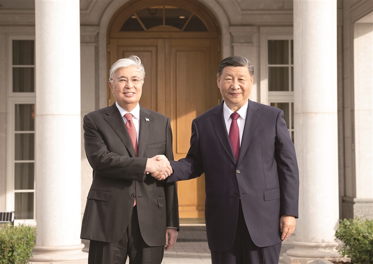 新华社阿斯塔纳7月2日电 当地时间7月2日晚,国家主席习近平应邀同哈萨克斯坦总统托卡耶夫共进晚餐,在愉快温馨的环境中就中哈关系和共同关心的问题进行了亲切友好的交流。