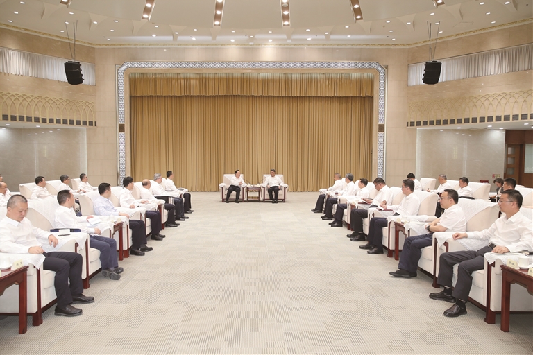新疆日报乌鲁木齐7月6日讯(石榴云/新疆日报记者 王兴瑞 刘翔)7月4日至6日,浙江省代表团来新疆考察对接对口支援工作、推动深化两省区务实合作。自治区党委书记马兴瑞,自治区党委副书记、自治区主席艾尔肯·吐尼亚孜7月5日在乌鲁木齐会见浙江省委副书记、省长王浩及代表团成员,深入贯彻落实习近平总书记和党中央决策部署,共同推动对口援疆工作高质量发展,携手开创两省区交流合作新局面。