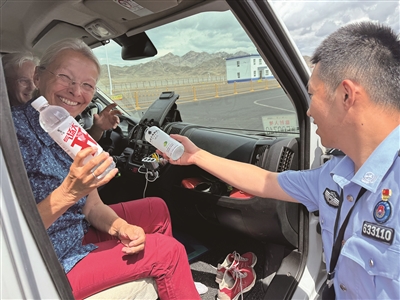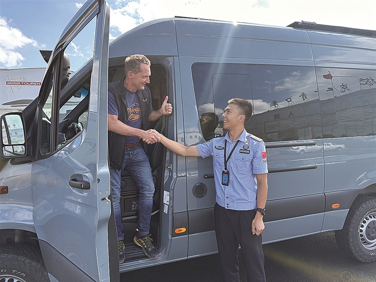 本报讯(记者 董发勇 通讯员 李涛)7月3日,一支由德国、瑞士两国老年游客组成的自驾旅游团在边检民警的热情服务和高效保障下,顺利从塔克什肯口岸出境。
