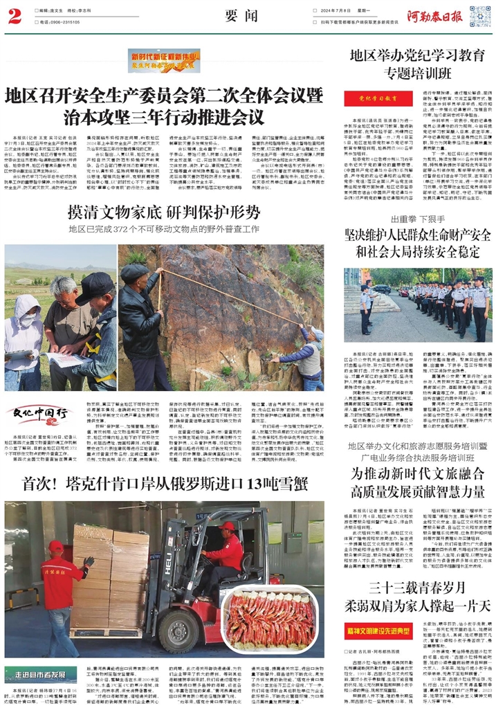 - 为推动新时代文旅融合 高质量发展贡献智慧力量 本报讯(记者 董世菊 实习生 石杨晨熙)7月4日,地区举办文化和旅游志愿服务培训暨广电业务、综合执法服务培训班。 此次培训为期2天,由地区文化体育广播电视和旅游局主办,旨在进一步提高