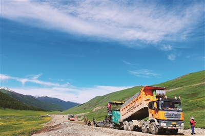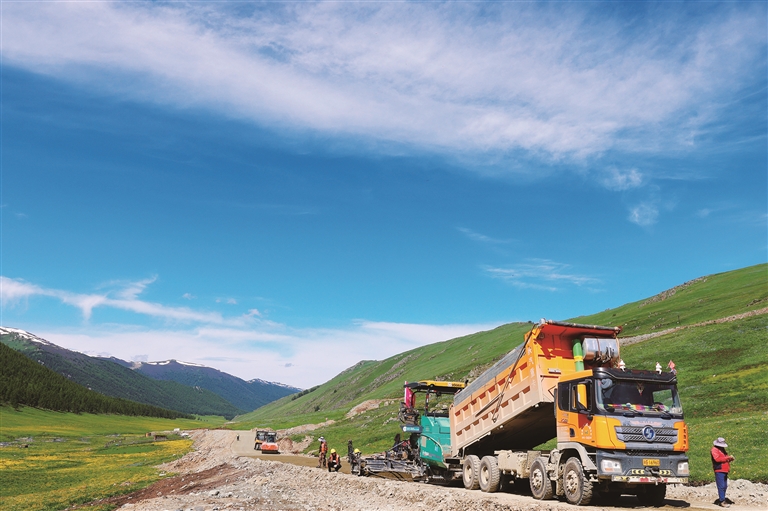 近日,阿禾公路切肯达拉路段施工现场一派热火朝天的繁忙景象。