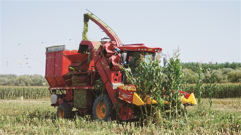 本报讯(记者 代维利)近日,在哈巴河县萨尔布拉克镇,连片的玉米地郁郁葱葱,数台大型机械正在忙着采收、装载、拉运……