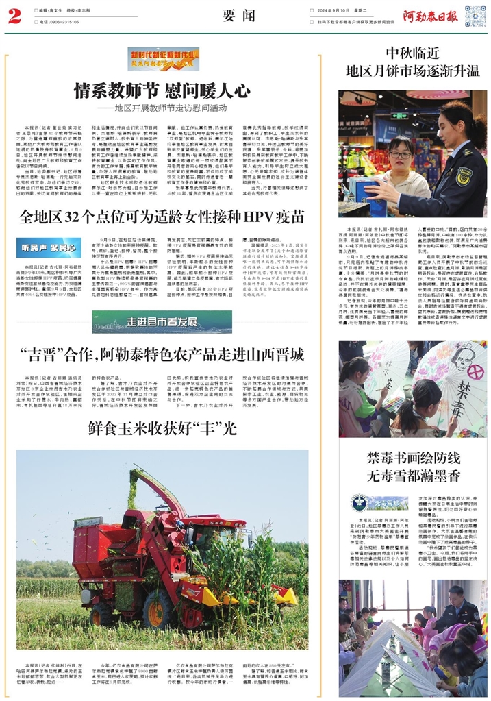 - 全地区32个点位可为适龄女性接种HPV疫苗 本报讯(记者 古扎丽·阿布都热西提)今年以来,地区积极引导广大适龄女性接种HPV疫苗,切实提高适龄女性宫颈癌免疫能力,为女性健康保驾护航。截至9月5日,全地区共有4054名女性接种