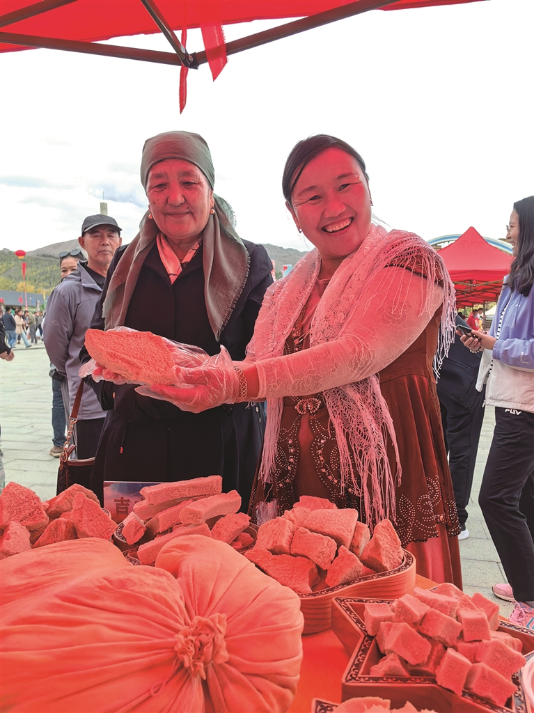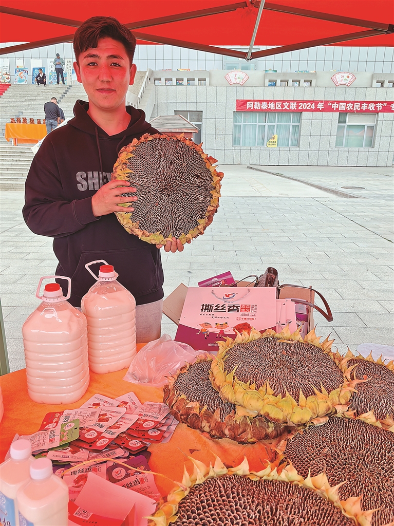 “看,那边围了那么多人,肯定有好东西!”随着现场观众的指引,记者来到了特色农牧产品评选区域。在这里,各式各样的农牧产品琳琅满目,从阿勒泰食葵、玉米棒、南瓜、奶疙瘩、马奶、阿勒泰羊,到通过现代科技加工的即食产品,应有尽有。一场关于品质与创新的“较量”正在激烈上演。